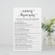 Koop dit spel en geniet van een Nursery Rhyme Quiz-kaart van hoge kwaliteit voor uw evenement! Genderneutraal zwart-wit ontwerp. ANTWOORDEN: 1. peper, 2. de slager, de bakker, de kandelaar, 3. de wand, 4. de vrouw van de landbouwer, 5. de genade, 6. drie zakken vol; 7. Zijn vrouw kon geen slank eten; 8. 9 dagen oud; 9. mittens; 10. cake; 11. kuste de meisjes; 12. tuffet; 13. Kersttaart; 14. Om de arme hond een bot te geven; 15. voor zijn avondeten; 16. pieman; 17. zilverbellen, cockpitschelpen, dienstmeisjes; 18. varken.