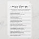 Koop dit spel en geniet van een Nursery Rhyme Quiz-kaart van hoge kwaliteit voor uw evenement! Genderneutraal zwart-wit ontwerp. ANTWOORDEN: 1. peper, 2. de slager, de bakker, de kandelaar, 3. de wand, 4. de vrouw van de landbouwer, 5. de genade, 6. drie zakken vol; 7. Zijn vrouw kon geen slank eten; 8. 9 dagen oud; 9. mittens; 10. cake; 11. kuste de meisjes; 12. tuffet; 13. Kersttaart; 14. Om de arme hond een bot te geven; 15. voor zijn avondeten; 16. pieman; 17. zilverbellen, cockpitschelpen, dienstmeisjes; 18. varken.