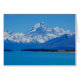 Een prachtig blauw meer aan de voet van de sneeuwkapotte bergen op het eiland NZ.