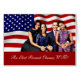 Olieverf President Barack Obama en familie met de Amerikaanse vlag achter hen.