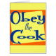 Obey de Cook snappy keukenslogan. Je moet de kok gehoorzamen als je wilt eten! Voor chef-koks met een houding! Een funky lettertype van 50 in blauw op een gele en oranje achtergrond.