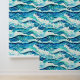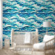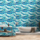 Ideaal voor elke strandinrichting; kust-eiland restaurant; hotels aan zee; lodges; resorts en chalets, deze donkere en turquoise blauw gemengd met witte muurschildering heeft horizontale golvende golven en kleine witte paarden die van links naar rechts stromen. Breng het strand binnen, met dit moderne, eigentijdse en elegante naadloze patroon dat gemakkelijk te pellen is en aan zowel gladde als gestructureerde muren kleeft.