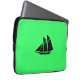 Ocean Glow_Black-on-Green Clipper Ship Laptop Sleeve