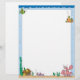 Dit briefhoofd heeft een blauwe grens van zeepbellen, vis, en een kreeft en een schattige borst op de bodem van de oceaan.