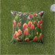 Dit is een originele foto van Tulips 's ochtends nog steeds met dauw druppelen. Ik hoop dat je van deze kussen geniet in je buitenruimte.