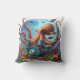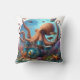 Een octopus speelt enthousiast een drumstel omringd door levendige koralen en tropische vissen in een heldere onderwateromgeving.