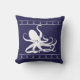 Stijlvolle werpkussens hebben een populair octopus en een nautisch verankerd ontwerp op een blauw kustdeeg van de marine.