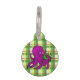 Een grappig afbeelding van een schattige cartoon-octopus die de doedelzak speelt. Om aan de Schotse sfeer toe te voegen, is de achtergrond een groen tartan-product.