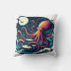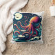 Een octopus speelt energiek drums te midden van golven, verlicht door het maanlicht, waardoor een levendige atmosfeer in de oceaan ontstaat.