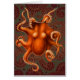 Octopus Red Cephalopod Dit octopus afbeelding is afkomstig uit een wetenschappelijk tijdschrift uit de jaren 1800. De rode octopus toont al zijn armen, met tentakels, en is een heel schattige octopus voor onze geschenkartikelen.