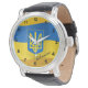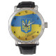 Oekraïnse vlag en Oekraïens embleem, teksthorloge Horloge