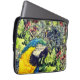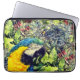 Een waterverf schilderij van een blauwgele ara in het oerwouden laptop hoesje.