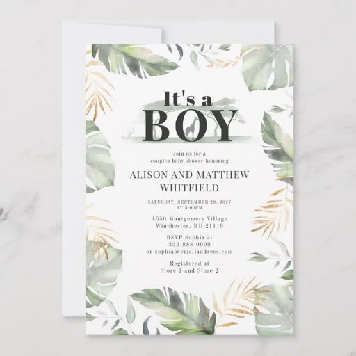 Jungle Safari Palm Leaves Baby Shower InvitationOntworpen door S A Holmes