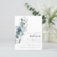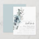 Moderne feestflesjes Bridal Shower Invitation. Een budgetprijs voor KLEINE 4,5 x 5,6 inch. Verkrijgbaar in een SEMI-GLOSS 110 lb KAART STOCK dat de standaardoptie is (dikker voor uitnodigingen), OF een SATIN FINISH 80 lb THINER PAPER STOCK (ideaal voor behuizingen). De enveloppen zijn een facultatieve extra en zijn lichtjes groter dan de kaartgrootte. De hedendaagse Waterverf bladerbloem en bloemen in korrels en poeder blauw aan de linkerkant en typografie aan de rechterkant. Pas de tekst eenvoudig aan uw eigen details aan.