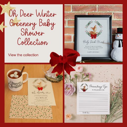 Stap in een winterwonderland met ons "Deer Winter Greenery Baby shower" collectie! Versierd met vertederende herten en feestelijke bessen, omvat dit thema de betovering van het seizoen. Bovendien hebt u de creatieve vrijheid om letterkleuren en -stijlen aan te passen, zodat u uw persoonlijke touch aan elk detail kunt toevoegen. Omarm de natuurlijke schoonheid van de winter en vier de aankomende komst van uw kleintje met dit charmante collectie. Het is de perfecte mix van gezelligheid en elegantie voor een onvergetelijk baby shower.