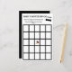 Het ontwerp toont het afbeelding van een vlinderdas, samen met de woorden "Oh Boy!" in de rechterbovenhoek. Afbeelding van een boutonniere markeert de "Vrije" plek. De titel luidt: "Baby shower Bingo". De aanpasbare tekst wordt onder de titel weergegeven. Voorbeeldtekst bevat de aanwijzingen voor het spel, maar kan worden aangepast om de aanstaande moeder te eren. Ontworpen om te coördineren met de "Oh Boy, It's a Boy!" Baby shower collectie.