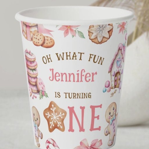 Make your little one's first birthday extra special with our "Oh What Fun" Gingerbread 1st Birthday Paper Cups! These charming cups add a magical winter touch to your celebration. Shop now and elevate your party with style!
