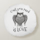 Owl schetch cartoon met hart gevormd lichaam en douanetekst.