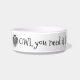 Owl schetch cartoon met hart gevormd lichaam en douanetekst.