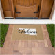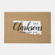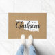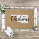Moderne boerenboerengepersonaliseerde doormat met je familienaam in je staatskaart. Faux burlap canvastextuurachtergrond. Klik op Aanpassen om uw eigen tekst en afbeeldingen toe te voegen en een uniek ontwerp te creëer!