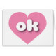 Deze kaart bevat een kalm, koel roze hart met de vettige, afgeronde witte onderste hoesje letters ok, een afspeelse versie van de afkorting voor Oklahoma, hoe eerder de staat is. De kaart is leeg binnenin, wachtend op uw gepersonaliseerde tekst of handgeschreven sentimenten.