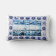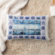Oude Holland Nederlandse Delftware/Delft-Blue-Blue-look Style Tiles Mural Pillow. uitzicht op Amsterdam Holland Nederlands Delft Blue/Delftware stijl tegelmolen met een oud 18e-eeuwse maritieme uitzicht van handelsschepen in de stad Amsterdam en tegels met afbeeldingen van een paraplu-man op een regenachtige en windrijke dag in de windmolens van de Zaanse Schans, Amsterdam Skinny Bridge, Nederlandse kogels/klompen, bitterse windmolen, kompas tiles en een zeilboot.