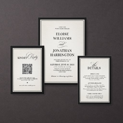 Perfect for estate weddings, formal church ceremonies, and grand ballroom celebrations, this design blends heirloom elegance with modern romance, making it a graceful first announcement for your luxury monochrome suite.