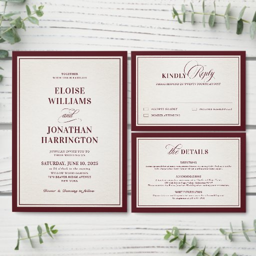 Old Money Modern Formal Burgundy Luxury Wedding Ontworpen door Bliss Design Studio