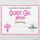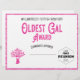 Heb wat plezier en geef deze Oldest Gal Award uit tijdens de uitreiking van je familierestituties. Roze, zwart en wit met een gedempt uiterlijk omvat een stamboom met een hart en een familiereünie logo. Schrijf in de naam van de prijswinnaars, voeg uw familienaam, jaar van gebeurtenis en plaats van de gebeurtenis toe. Mooie gezinshereniging is een goede herinnering.