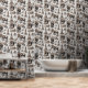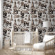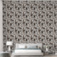 Dit luxe behang beschikt over een set van grijze Afrikaanse olifanten naast kleine oriëntatiepunten of beelden.