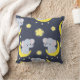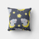 Een charmant ontwerp met schattige baby-olifanten die op halve manen zitten, omringd door gloeiende, lachende sterren. De vrolijke gele manen en sterren, tegen een achtergrond van een diepe marine, creëer hebben een sereen en magisch nachtthema.