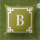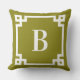 Olijf en wit Grieks Key Border Monogram Buitenkussen