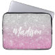 Ombre Pink Silver Glitter Calligraphy Name Laptop Sleeve