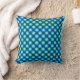 Sierkussen in retroflecterende stippen met een contrasterende grens, gebaseerd op een klassiek, middeneeuws modern upholsterpatroon - bleke groene stippen met een turquoise / paukblauw op een donkerkblauwe achtergrond