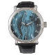 Omgekeerde zijwaartse engel in zwart en lichtblauw horloge