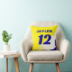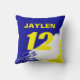 Personaliseer deze naam en nummerkleurenmengeling, de stijl van de verfborstel blauw, geel, en wit werpkussen. De opties voor het wijzigen van het lettertype of de kleur van de tekst zijn beschikbaar. Ideaal voor een mannen grot, slaapzaal of slaapkamer.