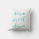 Deze stijlvolle, heldere kussen zeggen "dorm zoete dorm" in de moderne typografie in turquoise en wit. De kussen zijn omkeerbaar zodat u kunt kiezen welke overeenkomst uw decor het beste aanpast.