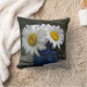 Deze omkeerbare kussen zijn voorzien van witte maissoorten in een kobaltvase die in een rotstuin rust en aan de andere kant van de rotsbodem is een verbluffend hete rode zinnia tegen een blauwe achtergrond