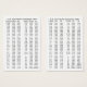 omzettingstabellen voor U.S. Inch / Foot Fraction Visitekaartje