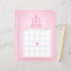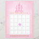 Roze sprookjesachtige baby shower bingo voor een douchegame voor een jongen of meisje in blauw en goud, met een magisch roze kasteel.