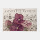 Een stilstaand leven van vier roze pansies op een muziekblad met de titel "Tussen de pansies". Fotografie van Sandra Foster © Sandra Foster Design - Zazzle.