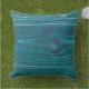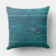 Een Uitzicht van hout - Het abstracte ontwerp van ZoeSPEAK van strepen en vormen op dit Sierkussen is gemaakt van Zoe's originele houtfoto. In deze tinten aquablauw met stukjes rood, horizontaal lopend, lijkt het een beetje op een profiel van water, kabbelend bovenop en vlak aan de onderkant, met mysterieuze vormen onder het oppervlak.