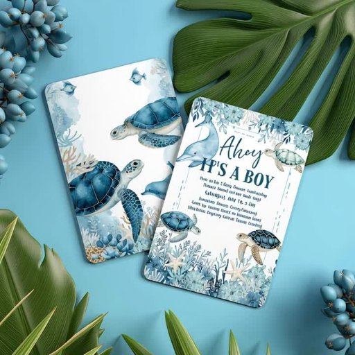 Duik in het perfecte feest met onze Under the Zee Blue Ahoy Het is een Boy Baby shower Invitation! Dit prachtige ontwerp met nautische thema's beschikt over schattige dolfijnen, schildpadden en oceaanvibes in levendige blues, ideaal voor een trendy baby shower. Deze aanpasbare uitnodiging is ideaal voor aanstaande moeders en voegt een vleugje stijl toe met zijn waterverf artisticiteit en op zee geïnspireerde charme. Ideaal voor bijzondere baby showers, gender reveal party’s of nautische kwekerij thema’s. Geef uw evenement een boost met dit in het oog springende, hoogwaardige digitale ontwerp, perfect voor afdrukken of online delen. Pak deze must-have baby shower-uitnodiging vandaag om golven te maken bij je volgende feest