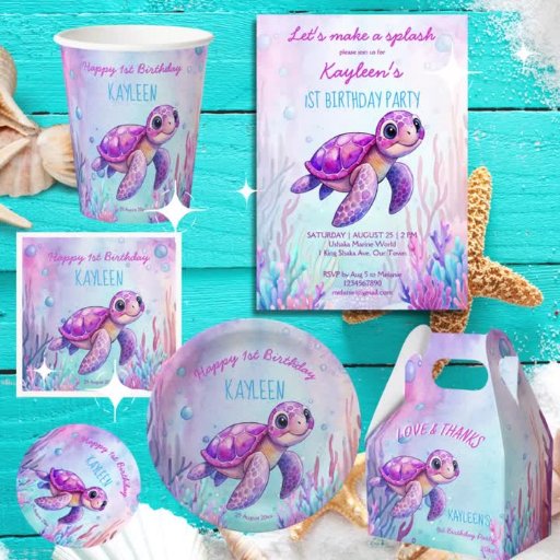 Sea turtle cute pink turtle girl birthday suppliesOntworpen door Ieva Jenciute