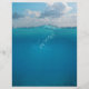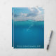 Blauwwaterachtergrondpapier en kraampapier. Het afbeelding is een gedeeltelijk uitzicht onder water, met luchtbellen onder het oppervlak met de horizon en de hemel boven. De witte, hand-gedrukte tekst langs de bodem kan de paginatitel of om het even welke formulering houden. De tekst richt zich aan de bodem. Hetzelfde afbeelding, maar geen tekst-sjabloon, staat aan de andere kant van het papier, dat 8,5 x 11 inch meet. Gebruik in een plakboek, een fotoalbum, of om het even welk doel. Dit product heeft veel papieropties.