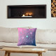 Een mooi ontwerp van de gooikussens met een glanzend luxueus mandala/sneeuwvlok in blauw metallisch gedecoreerd met edelstenen op een roze tot paarse gradiëntachtergrond.