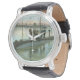 Dit horloge heeft een vintage afbeelding van mannen die op een onderzeeër staan.