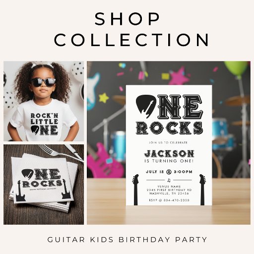 Roll into your first milestone with this cool One Rocks guitar pick birthday party invitation for one year old kids. Great for little rockstars who love music. Personalize it with your event details for a rocking event that is unique to you.