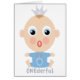 Een ONEderful BABY "Baby Face"-personage, in blauw gekleed met een kroon met een bijpassend blauw hart, is klaar voor het eerste verjaardagsfeest van ONEderful BABY. Selecteer uit kleding voor mam, pap, oma, opa en de gast van eer, de nummer ONE ONE ONEderful BABY. Ook beschikbaar op de uitnodigingen van de verjaardagspartij die u kunt aanpassen, dank u nota's en giften voor feestelijke gunsten voor uw gasten.