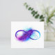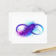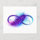 Oneindigheidssymbool met een prachtige veer geschilderd in paarse en blauwe heldere kleuren op witte achtergrond.